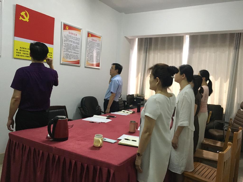 会上,全体党员一起重温入党誓词,向党旗庄严宣誓。
